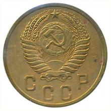 Реверс: герб СССР с одиннадцатью витками перевязывающей ленты. Под ним полукругом со ступенчатым расположением букв надпись "СССР".